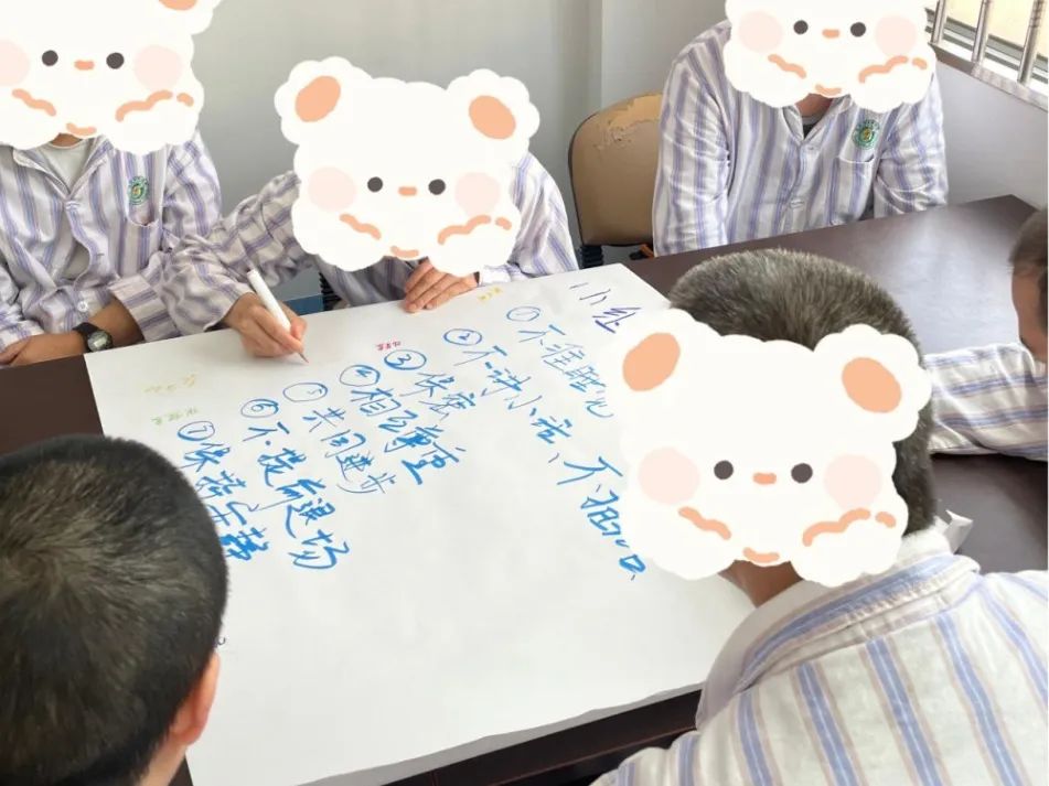 “没有规矩,不成方圆,今天大家聚在一起组成一个小团队,是不是也要订立一些小规则呢?”社工如是说,组员纷纷同意,并积极给出自己的建议,“不讲小话!”、“保持卫生”你一言,我一语中,小组规则初见雏形,小组契约渐渐形成。小组契约的制定,约束了组员行为,增强小组凝聚力,也为小组顺利地开展保驾护航。