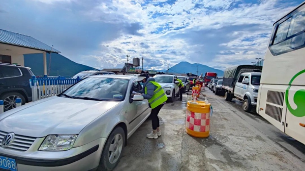 西藏报告疫情以来,抖音微信等自媒体上流传起“回家还得214”的段子。段子虽调侃,但的确是有很多自驾游的旅客在返回路线上选择了G214线。作为214线上进出香格里拉的交通重要节点,尼西安全监测服务点承担着更重的查验压力。