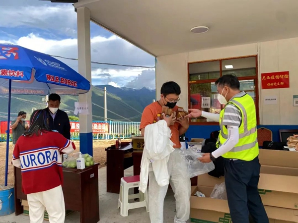 这同时也是出入香格里拉通道上传递温暖与大爱的服务站点。在人们有着特殊需要的时候,香格里拉人从不吝啬付出和赠与。8月11-12日,尼西安全监测服务点车流量增大,看到途中有饿着肚子的入香返香游客,点位临时党支部为等待查验的人员提供鸡蛋、面包等食物,这样一个暖心的举动经媒体转发宣传,赢得网友的纷纷点赞。看到点位上工作人员的辛苦、得知点位上有服务群众的需求,香格里拉人大、政协、爱心企业等积极行动起来,一批又一批的爱心物品送往各个服务点,希望在疫情防控这样特殊的时候能多给过往群众、游客和一线的工作人员一些温暖。“这是我家的包子,刚蒸好拿来给你们吃!”、“我们村里有些军大衣,你们晚上穿!”、“我们带来了一批物资,请你们收下!大家辛苦了!”也有些附近的村民以及前来送爱心的人士,把东西、物品等留在服务点后悄悄地离开!……“一路上辛苦了,这里有水和面包,别饿着!”“有老人小孩没有,可以拿点鸡蛋吃!”服务点上的工作人员、志愿者们又为有需求的过往群众、游客传递着香格里拉的温暖与爱心,一股股暖流在各个服务点上涌动。