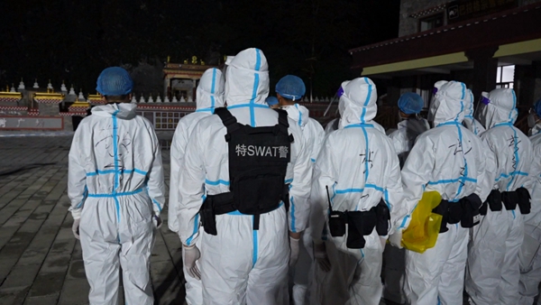 然而,在常态化新冠肺炎疫情防控背景下,省外的疫情报告让这个云开月明的州府城市又开始紧张了起来。特别是8月8日西藏报告疫情到8月11日邻县报告疫情,生活在滇藏茶马古道要冲、G214线上的香格里拉市民真切地感受到绷紧的神经一天更比一天紧。市应对疫情指挥部分析研判调度疫情防控工作的频次与力度明显提升了一个档次。从发出“苦战十天全力出击坚决打赢香格里拉疫情防控阻击战”这一信号以来,指挥部以及下设各工作专班迅速集结并增强,发文应对疫情防控工作十条措施,紧急开展疫情防控应急处置桌面推演,取消了市级各机关事业单位休假,恢复设立安全监测服务点、加强社区网格排查、优化闭环健康监测服务、加大核酸检测力度、消杀营造健康环境、接纳滞留途中出藏入滇人员……一场没有硝烟的阻击根据周边的疫情防控态势紧急打响。