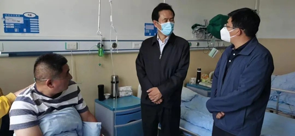 8月18日晚22时,杨勇同志在从邻县护送群众到开发区,返回单位进行交接工作时突然晕倒,被同事送往医院进行紧急抢救。市委、市政府主要领导心系疫情防控工作人员,第一时间前往迪庆州人民医院安排治疗杨勇同志有关事项。经治疗好转后,8月20日,市委、市政府主要领导再次看望治疗中的民警,并通过他向坚守全市疫情防控的工作人员及家属致以了崇高的敬意。