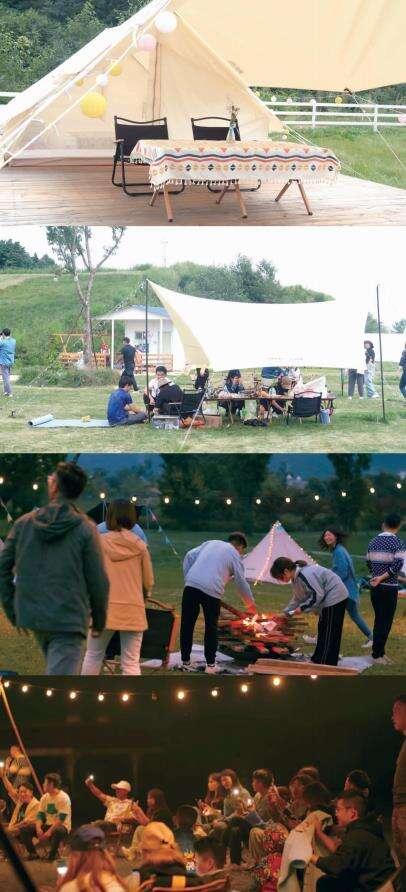 据营长李金武介绍,营地提供免费停车区,游客可带宠物前往,除了自助烧烤、滑草坪,工作人员还会引导游客学习非洲鼓、看露天电影、举行篝火晚会等。