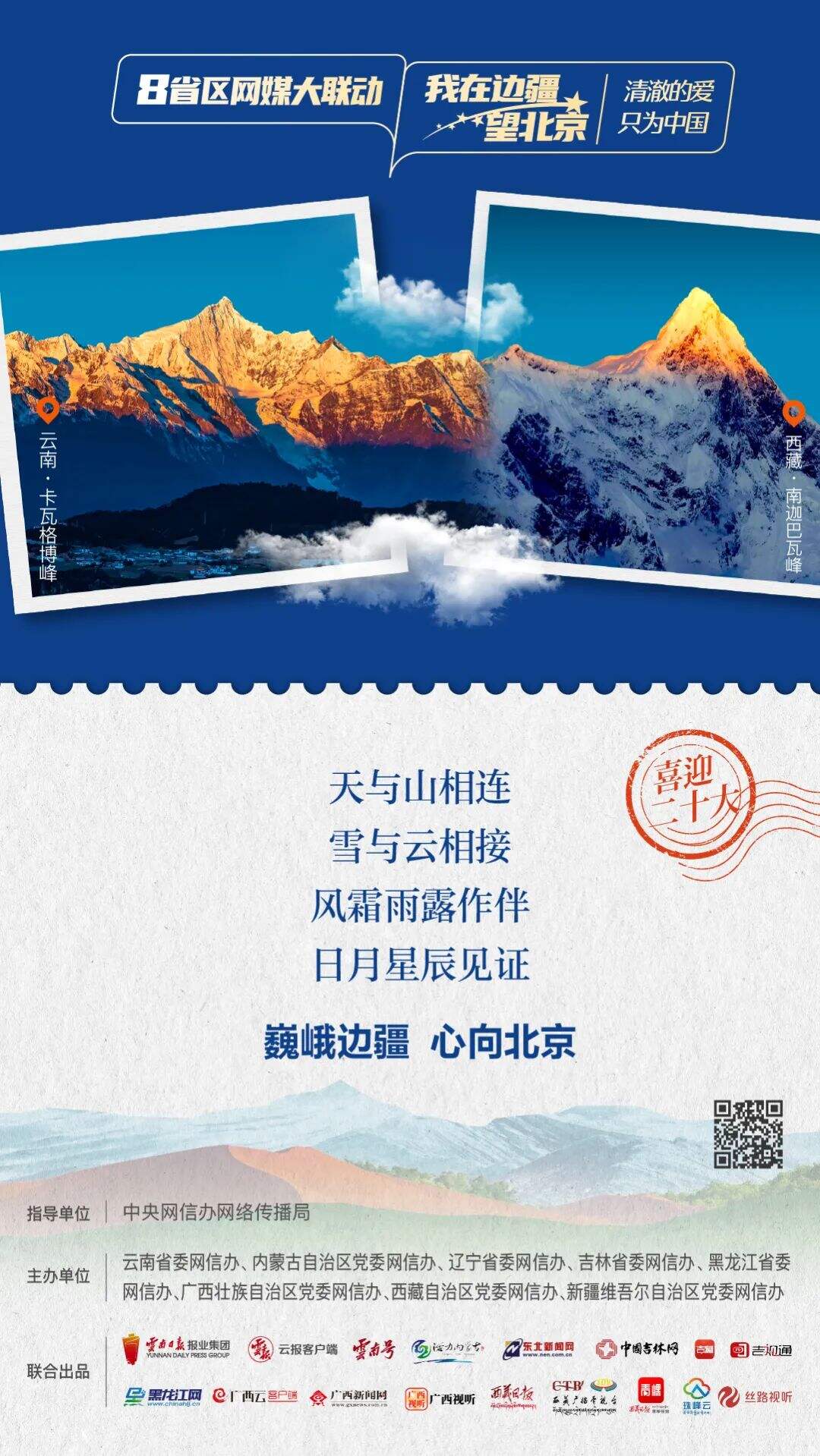 为生动讲述在党的引领下边疆地区发生的翻天覆地的变化,深刻描绘边疆各族群众以实际行动向党的二十大献礼,深情告白“喜迎二十大 奋进新征程”喜悦之情。由中央网信办网络传播局指导,云南省委网信办联动内蒙古、辽宁、吉林、黑龙江、广西、西藏、新疆共8个边疆省区党委网信办主办,云南日报报业集团云报客户端、云南省媒体融合重点实验室·精品制作融媒工作室策划执行并联动8个沿边省区主流媒体,联合推出融媒体联动产品《8省区网媒大联动·我在边疆望北京》。今天一起来看第五期:“清澈的爱 只为中国”。