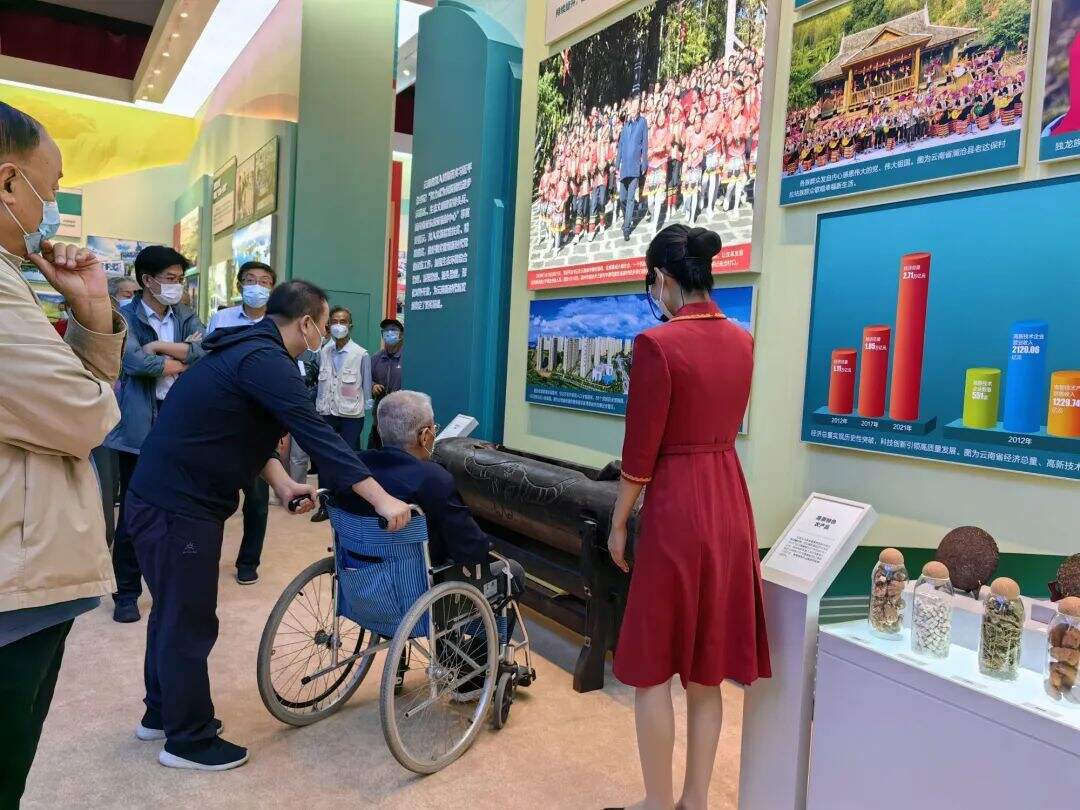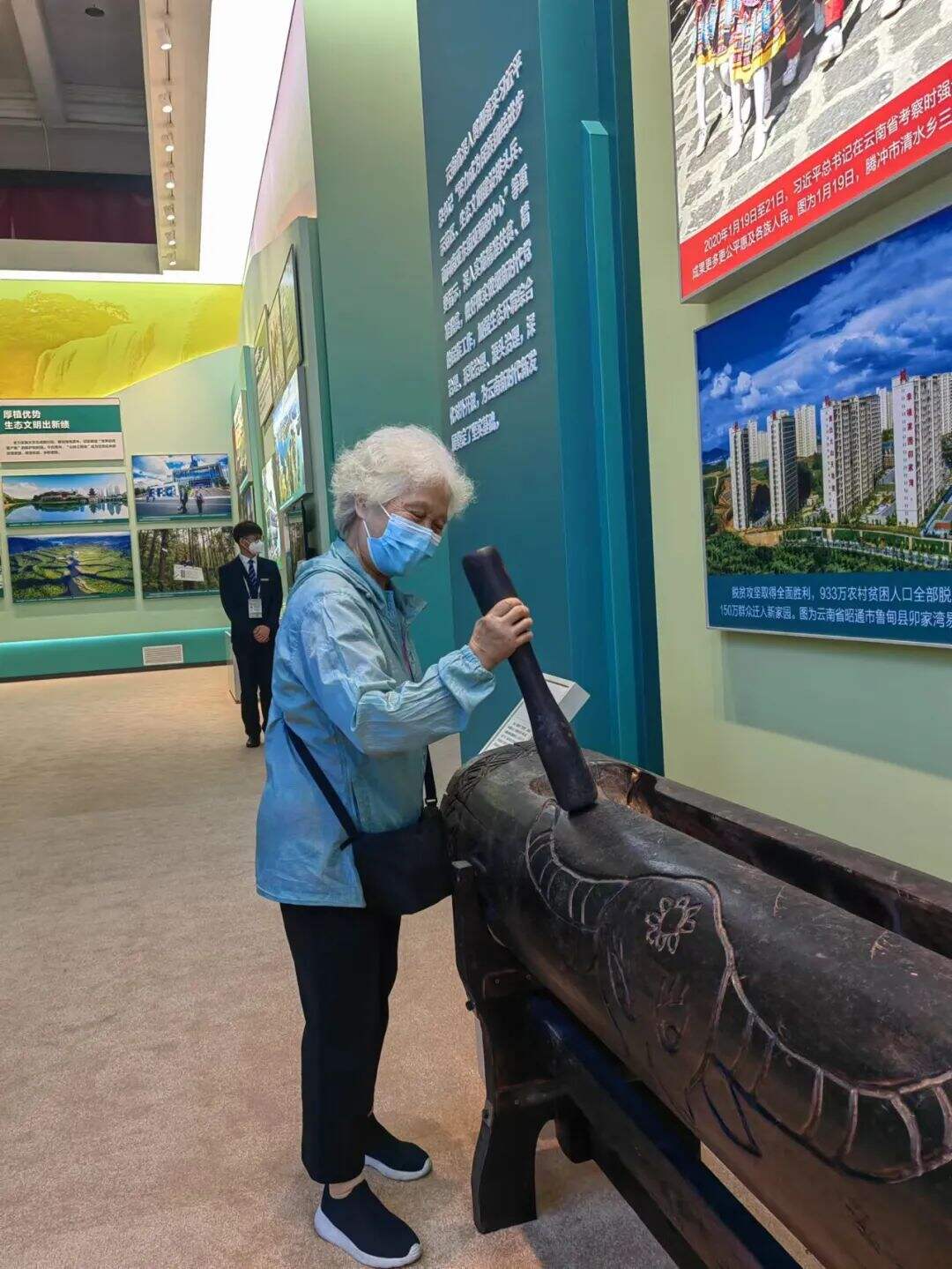 “一个月云南行,一辈子云南情。”一位白发苍苍的老先生看到木鼓时非常兴奋,对讲解员这样说。他知道这是佤族的木鼓,这让他想起多年前在云南省工作的情形,他在云南工作了一个多月,对云南和云南人民都产生了深厚的感情,回来后还一直和当地的老师保持着联系。参观完,他不仅回忆起了很多美好的时光,更从各个角度了解到云南这十年的发展变化,在首都北京感受到了浓浓的云南风情。