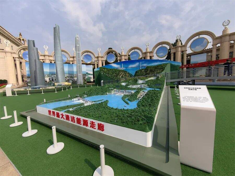 在“经济建设奋楫扬帆 谱写高质量发展新篇章”单元,白鹤滩、向家坝、乌东德三座水电站连拼的展板格外引人注目。2021年,全国水力发电装机规模达到3.91亿千瓦,发电13401亿千瓦时,占总发电量的15.7%。2012年以来的这十年是云南干流水电站投产最多的十年,乌东德、白鹤滩、溪洛渡、糯扎渡、黄登、观音岩、鲁地拉等12座水电站相继投产发电,全省水电装机由3499万千瓦提升至7820万千瓦;同时,能源产业跃升为全省第一支柱产业。