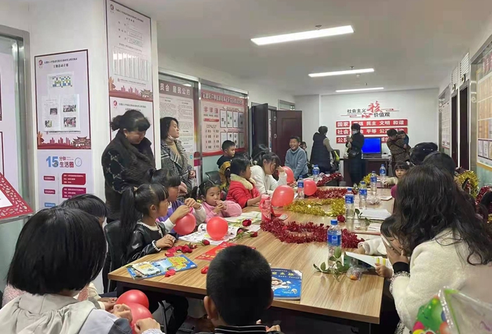 在志愿者的带领下,小朋友齐心协力悬挂红色气球,布置节日彩带,把儿童之家活动室装扮得更有节日氛围。“万家灯火元宵闹,一碗汤圆瑞气盈”,志愿者将一碗碗暖身又暖心的汤圆送到居民群众手中,让居民们感受到团圆美满的氛围和社区大家庭的温暖与关爱。