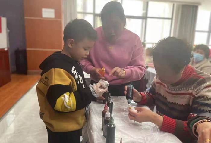 昆明信息港讯 通讯员郭武辉 2月15日,官渡区六甲街道星海社区联合官渡区润土青少年事务服务中心开展“庆元宵赏国韵巧手弄扎染”主题活动,体验非遗扎染DIY,共聚一堂吃元宵,居民在满满的传统文化氛围里欢度元宵佳节。