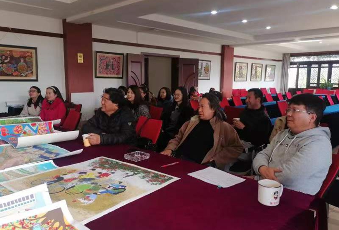 “这幅作品,构图比例不是很恰当,色彩可再鲜明点、运笔可再多元化一些、手法要统一……”在当天的结业典礼作品点评会上,来自云南省民间绘画的专家学者分别从主题、构图、寓意、色彩运用等民间绘画维度,对此次培训班中精选出来的30余幅画作进行点评。专家学者表示,此次培训班上创作的作品,大部分主题鲜明、形象生动,运色大胆,线条粗犷,画面饱满,具有较高的思想性、艺术性和观赏性。但对作品中表现得不太专业和成熟的地方,专家学者也不留情面,提出权威和善意的点评。