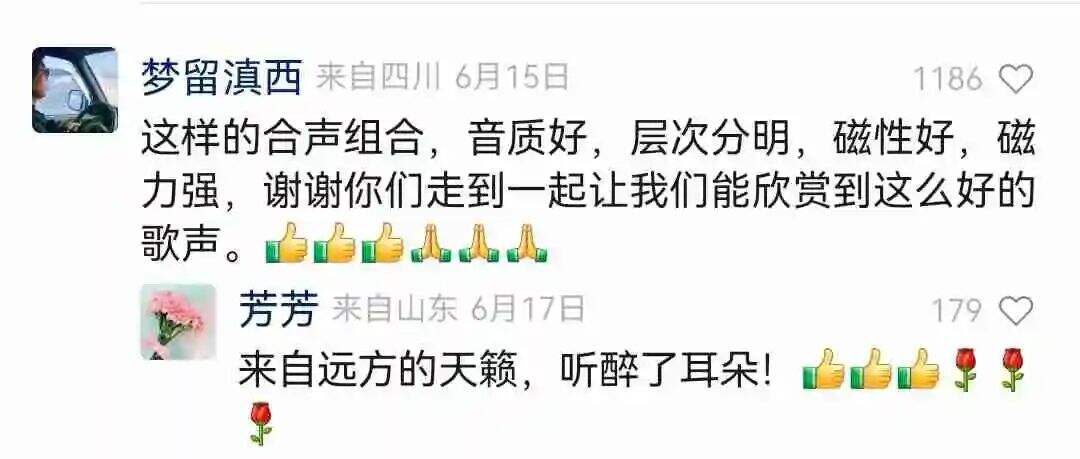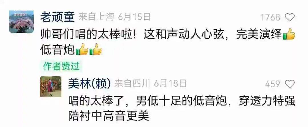 “低音炮、男神组合、直击心灵、天籁之音、最强合唱……”作品中的优美和声、生活化的歌唱表达、颇具磁力男低音所震撼,引发网友无数评论和广泛关注。