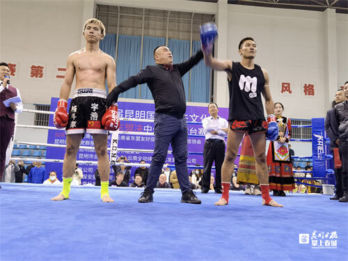​掌上春城讯 10月16日晚,第五届昆明国际功夫文化节暨《东盟决》中外功夫播台赛在经开区昆船体育馆开幕,紧张激烈的对决引得观众不断喝彩。 本届功夫文化节在省体育局和云南省东盟友好促进会以及昆明经开区社会事务局指导支持下,由云南全动体育文化发展有限公司和昆明市自由搏击协会承办。