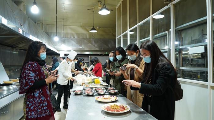 活动现场,主办方请来了国家级烹饪大师、云南十大滇菜名厨陈生合手把手教学,他先给大家做了一道锦上添花,以虾蓉为主料,用金针菇和培根肉做成花朵造型,再辅以石榴花为装饰,一盘色香味俱全的佳肴伴随着热气上桌。妇女同胞们个个跃跃欲试,并在老师的指导下完成了锦上添花、民族大团结和大鹏展翅3道菜。