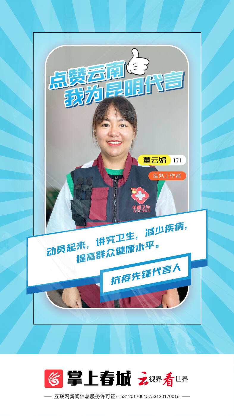 “春城名片”中外闻名、生态建设成果斐然、历史文化底蕴深厚……昆明的美,从不炫耀,这次由你来说!4月28日,“点赞云南·我为昆明代言”主题活动正式开启,活动将寻找2022年最强“代言人”队伍,用自己与昆明的故事,从多元的角度,尽情展示昆明这座网红城市的风情万种。 活动吸引了市民朋友的广泛关注,自启动以来持续火爆,每天均收到大量投稿,今天登上封面的就是“抗疫先锋”代言人董云娟。