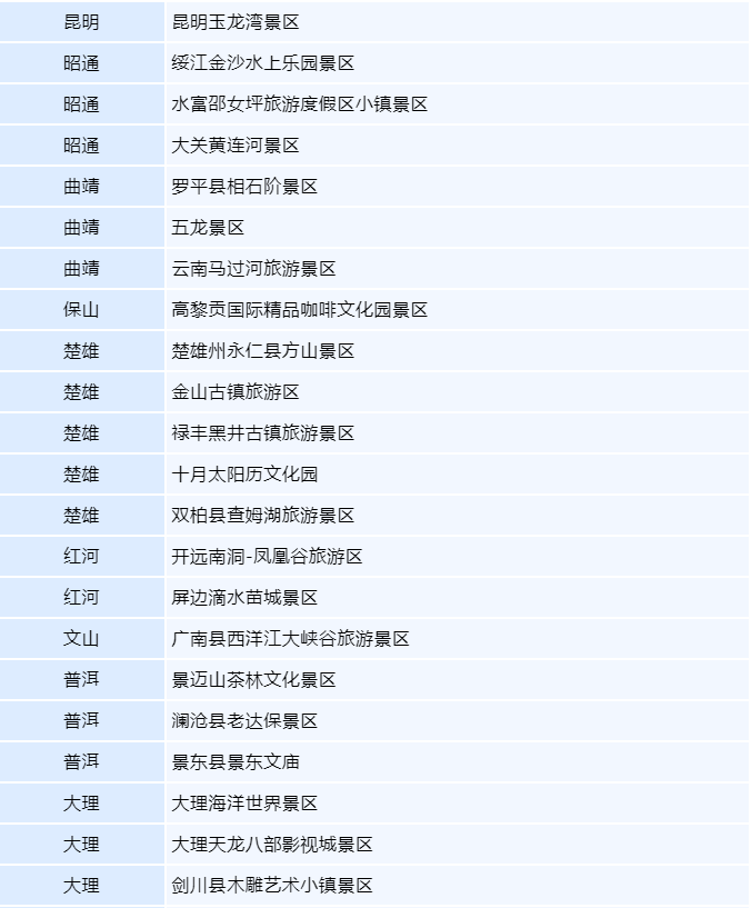云南省2022年国家4A级旅游景区名单