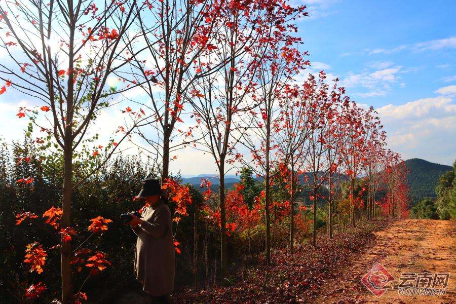深秋时节,在曲靖市马龙区月望乡普坎村山坡上,满山的红叶色彩浓艳,掀起一片片波涛汹涌的“红浪”,起起伏伏。一眼望去层林尽染,黄色、红色斑斓交错,在阳光的照耀下分外妖娆 。小村庄独有的宁静,村庄上空炊烟袅袅,薄雾笼罩在古枫树半腰,如梦如幻般的仙境让人沉醉。
