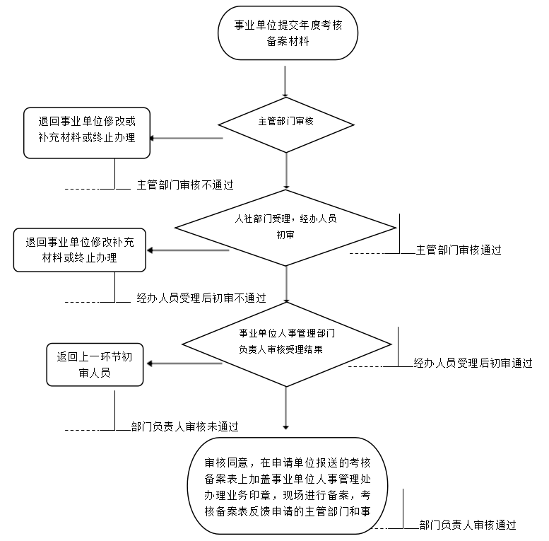 申请年度考核备案的事业单位已按规定实施年度考核完毕,将本单位考核工作总结和《事业单位工作人员年度考核备案表》报同级人力资源和社会保障部门备案。