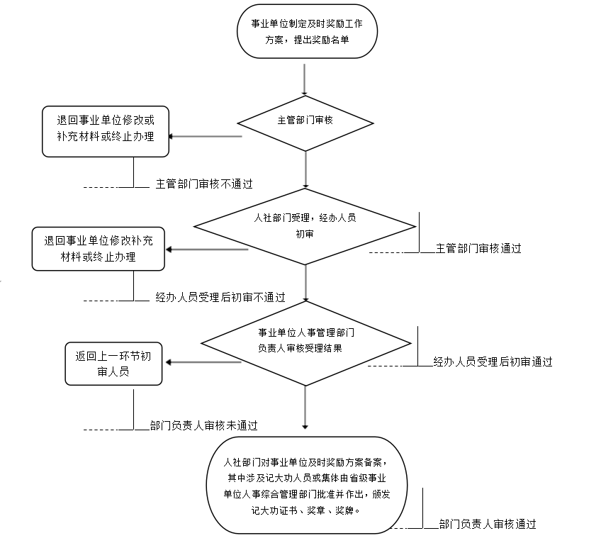 e) 事业单位拟对满足条件的工作人员或集体对记大功奖励,经主管部门或州级人力资源和社会保障部门审核同意后,报省级人力资源和社会保障部门审核;