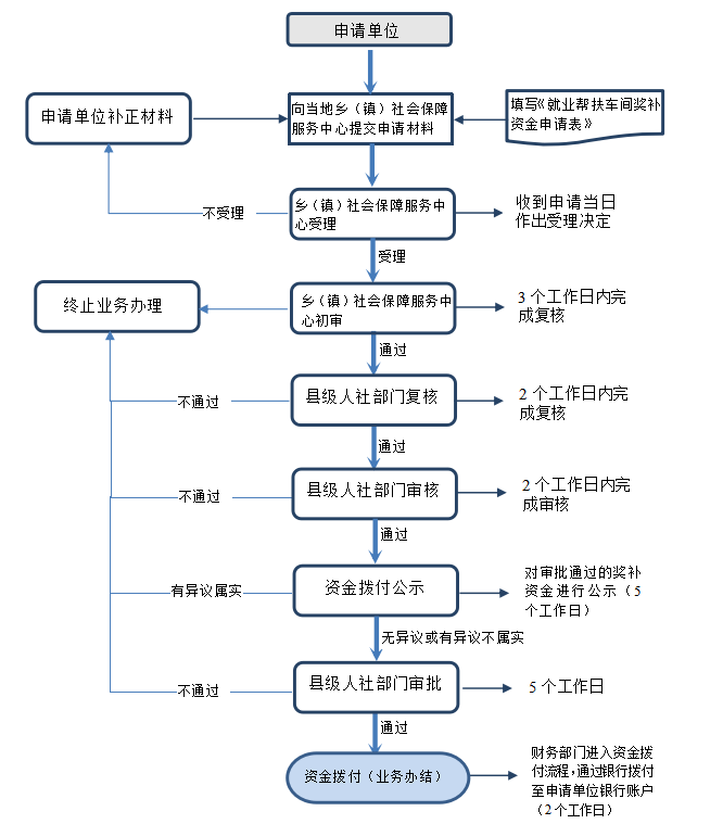 符合条件的用人单位向当地乡(镇)社会保障服务中心申请,填写《云南省就业帮扶车间奖补资金申请表》(见附录A表A.1),并提供相关证明材料: