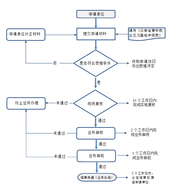 符合条件的单位向当地人社部门经办机构提交《云南省青年就业见习基地申报认定表》(见附录A表A.1)和以下申报材料: