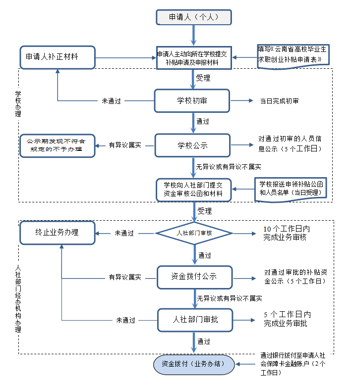 申请人主动向所在学校经办部门申请,填写《云南省XX年高校毕业生求职创业补贴申请表》(见附录A表A.1),并提供以下证明材料:
