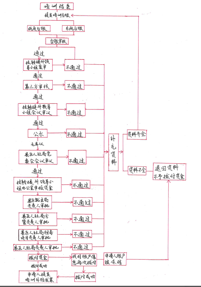 5.1 在培训结束、参训学员通过职业技能鉴定取得证书后,培训单位向当地县级人力资源社会保障经办机构申请职业技能培训补贴(含职业技能鉴定补贴),填写《职业技能培训补贴经费申报审批表》(见附录A表A.1),并按要求提交以下申报材料: