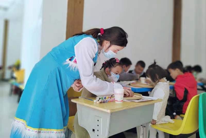 当天,来自欣景社区的老年人、少年儿童们齐聚社区儿童之家,工作人员为大家准备了竹编画和手工DIY的原材料,竹编上提前绘上了20个少数民族的人物画,小朋友们对照图像着色,老人们在工作人员的指导下做起了手工灯笼。大家一边做一边拉起家常,现场其乐融融。