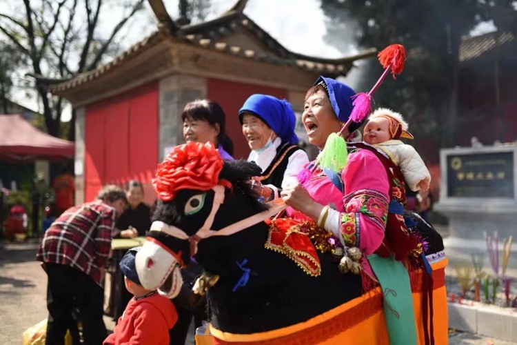 昆明信息港讯 通讯员熊艳琳 张云洪 王正鹏 3月10日(农历二月十九),官渡社区一年一度的传统民俗文化节---土主庙庙会在官渡古镇启幕。土主庙庙会是官渡古镇传统节庆之一,又名菩萨会、迎土主老爷,主要流传在官渡古镇附近的10余个村子里,经过多年的演变,如今已成为一项传统的民俗节日,吸引了不少游客。