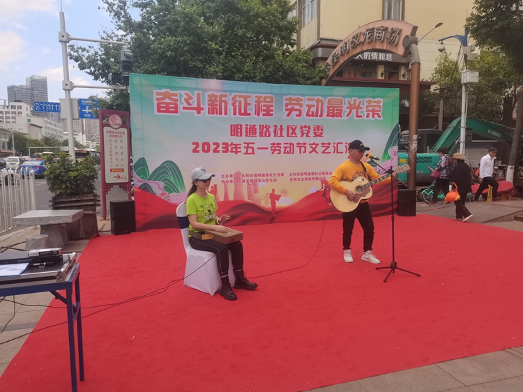 昆明信息港讯 通讯员郭武辉 劳动铸就梦想,奋斗书写精彩。4月27日,官渡区太和街道明通路社区联合昆明千逸贸创客空间运营管理中心开展2023年“奋斗新征程 劳动最光荣”主题文艺汇演活动,大力弘扬劳模精神、劳动精神、工匠精神。