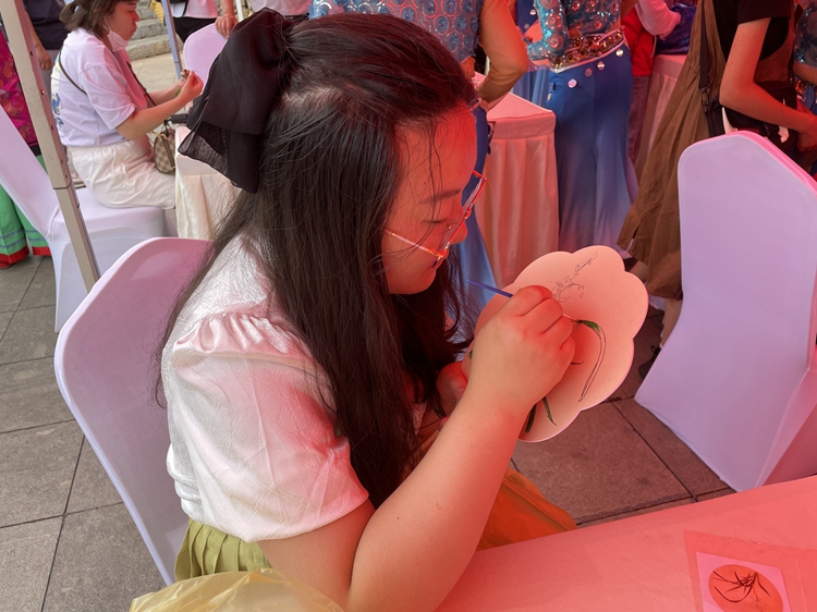 在舞台一侧,制香囊、绘团扇、投壶等民俗活动也不停歇。“我想做一个香囊”“我想玩一下投壶”“能给我做一个糖画么”……大家跃跃欲试,参与其中,深切感受中华民族传统文化的魅力。另一侧,艾叶、糯米也早早地准备好了,大家围在一起,各显身手,卷粽叶、装糯米、扎彩绳,现场充满了欢声笑语。此外,活动现场还有来自云南省第一强制隔离戒毒所的工作人员,为群众宣传禁毒知识。