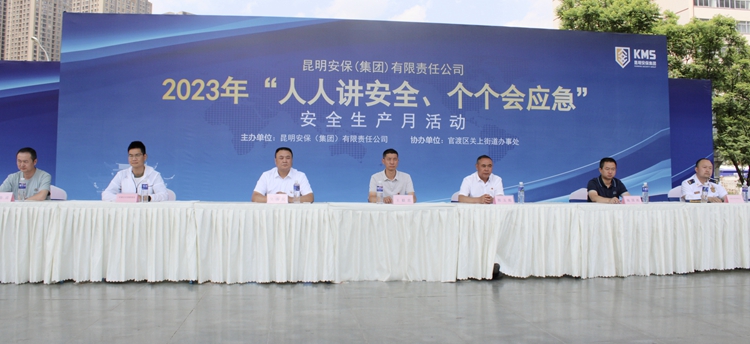 昆明信息港讯 通讯员仇晓敏 胡畅 扎实开展好昆明安保(集团)有限责任公司2023年“安全生产月”活动,进一步加大安全生产宣教工作力度,推动落实安全生产主体责任,有效防范和遏制重特大事故发生,6月25日下午,昆明安保集团在官渡广场举办了2023年度“安全生产月”启动仪式暨综合演练活动。此次活动由昆明安保集团主办,官渡区城管局、关上街道办事处承办。