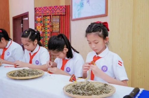 海南省海口市龙岐小学的黎族藤编和鹧鸪茶香包,展现出海南独特的民族风情。