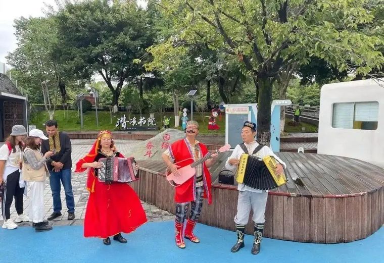▲四川成都天府新区华阳街道安公社区,居民在排练节目。周宛霖摄