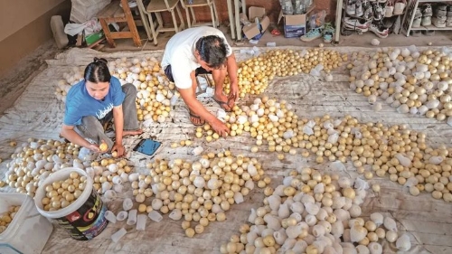 尚勇村委会磨站村小组村民正在打理自家的扁豆。