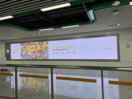 在银杏艺术节期间,昆明地铁四号线上线了本届银杏节 的平面视觉宣传,持续7日,每天自上午6:43时至夜间 23:58时滚动播放70次,每次播放时间持续15秒;共计为 海屯路站、苏家塘站、火车北站、菊华站、牛街庄站、 广卫站、斗南站、祥丰街站和吴家营站9个站台的数字 艺术墙(广告区域)。