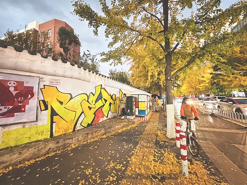 在文林街、文化巷和天君殿巷一带,以中国红、天空蓝、高原蓝、翠湖绿和银杏黄作为主色调进行创作,创作内容以抽象的手法基于字体的 构成,通过汉字拆解和重组,以及汉语拼音的堆砌和排列,并搭配一些广为熟悉的卡通、漫画形象。