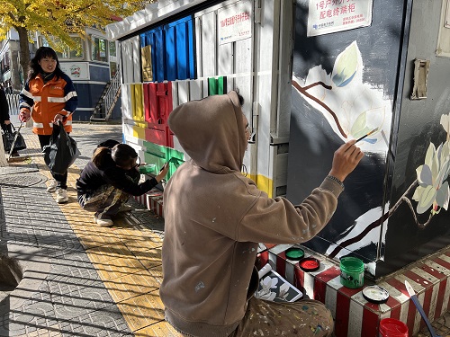 为贴合文林街、文化巷一带地域特色,显现出其特有的年轻化和包容性;选用时尚、简约的图形、色块和具有网红特色的元素,使得整体的墙绘偏向于一种插画风格,使其更具观赏性和装饰性,更能突显城市公共艺术的特色。对文林街、文化巷等地的30余个电箱和部分空白墙面进行了墙绘。