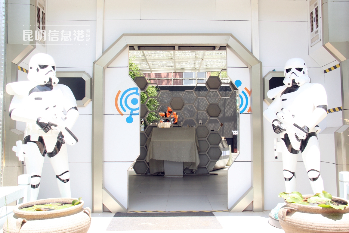 牛迪生发明工坊位于五华区羊仙坡22号。要一睹其真容,首先要穿过充满烟火气的小饭馆和加工厂。田锦林在室内遥控门锁,“哗啦”一声,便开启了科幻世界的大门。