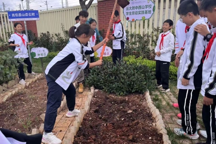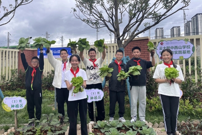 云大附中西山学校本着“劳动育人”的初心,动员全校师生在校内开辟了学生劳动实践基地,早早将劳动实践课程提上日程。在美丽的校园一角,同学们挥锹铲土播撒下希望的种子,这片“希望的田野”已经迎来了一波又一波大丰收!同学们亲手播种各类蔬菜的种子,经历翻土、平整、播种、浇水、除草、施肥等劳动,第一次亲身陪伴农作物从种子到发芽、生长到收获的全成长历程,深刻感知二十四节气与农作物的关系。辛勤的汗水浇灌出丰收的喜悦,如今劳动实践基地里始终一片生机勃勃。