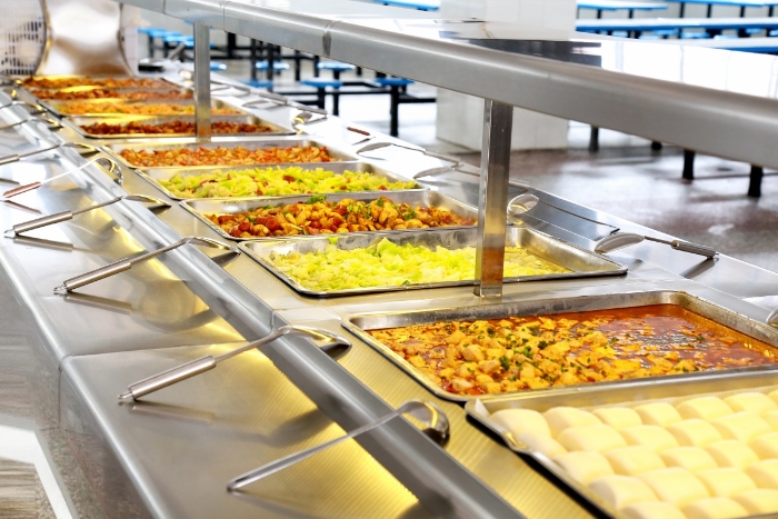 食堂管理·全面实行自助餐:学校采取自助餐形式就餐。学生可以根据自己的喜好和食量取餐,将自助餐模式搬进学校食堂。学生取餐、用餐全程按对应标识定人定位管理,秩序有保障,班主任全程跟餐,培养学生良好用餐习惯。